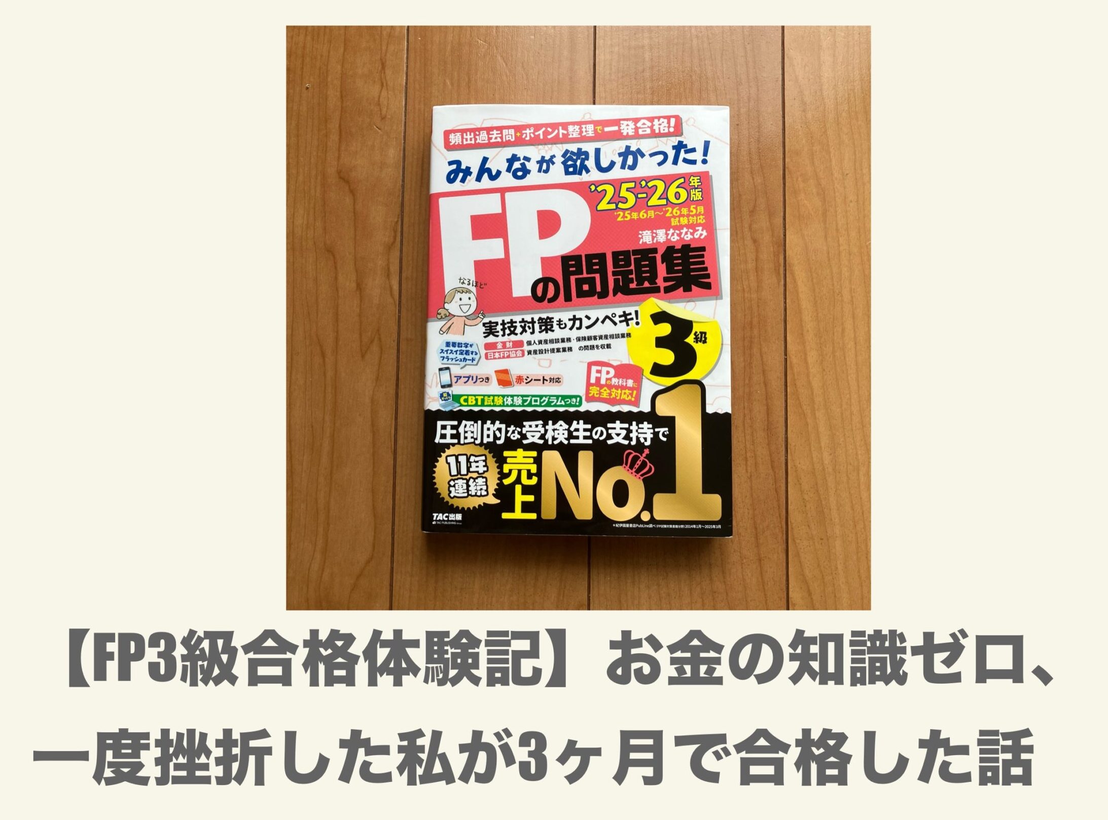 この記事はFP3級の勉強に一度挫折した私が、3ヶ月の勉強で合格するまでの体験談です。「お金の勉強を始めたいけど、何からやれば…」「勉強が続かない」という方の参考になれば嬉しいです。