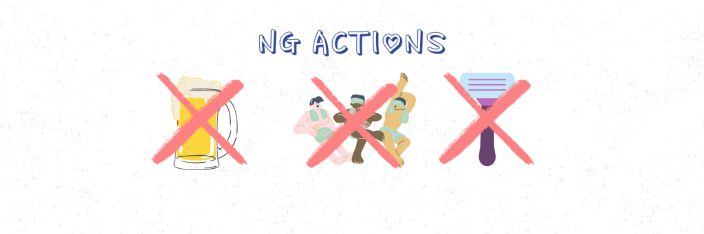 脱毛後は肌が敏感になっており、サウナや岩盤浴の高温刺激は赤みやかゆみの原因になります。また、汗で雑菌が繁殖しやすくなるため、毛穴トラブルを防ぐためにも当日は控えましょう。アルコールも肌が赤くなってしまい、敏感に反応してしまうので施術前はやめましょう。