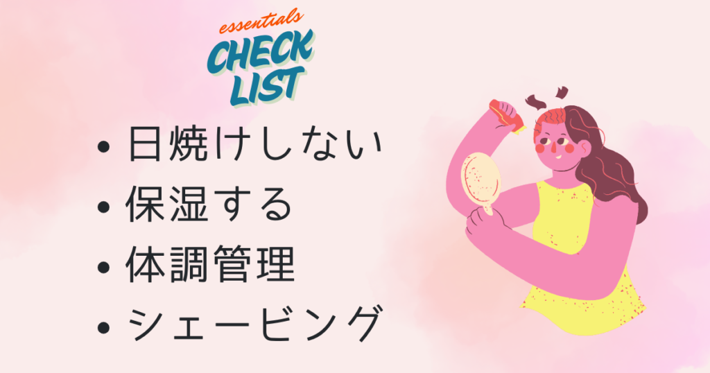 日焼けを避ける/シェービング/保湿/体調管理の4つをおさえておくと、施術の効果がぐっと高まります。