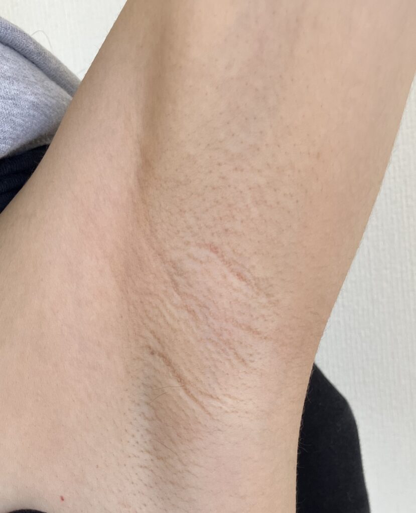 ワキはトータルで12回施術。アップすると、若干ぴょろっとした毛が見えるの分かりますか?