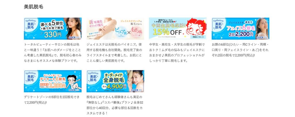 ジェイエステはトータルビューティーサロンなので、脱毛以外のサービスも提供しています。
