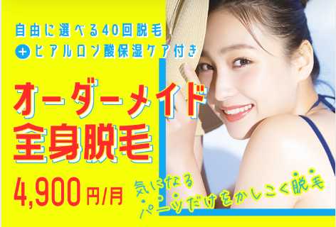 詳細はこちらです→オーダーメイド全身脱毛|全身32部位から自由に40回選べる!月額4900円